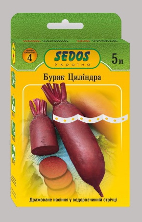 Середньостиглий сорт столового буряка. Коренеплід циліндричний, довжиною 10-16 см і діаметром 5-9 см, темно-червоний, масою 180-350 г. М’якоть однорідна, відмінного смаку. Вирізняється хорошою лежкістю. Посівна стрічка довжиною 5 м із водорозчинної плівки, яка дозволяє точно розподілити насіння. Плівка швидко розчиняється і не обмежує проростання насіння. Рослини мають достатній простір для росту і розвитку з самого початку росту. Не потрібно проріджувати рослини. Для посіву рекомендується відстань між рядами 20-25 см. Глибина посіву 1,5-2 см. Після посіву необхідно підтримувати оптимальну вологість ґрунту 50-60% (на дотик ґрунт вологий, але не мокрий).