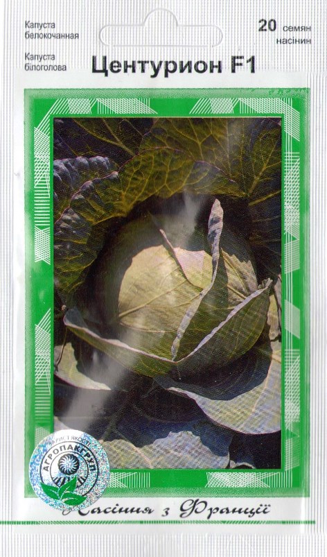 Новий гібрид середньої капусти літньо-осіннього циклу вирощування. Білі якісні качани мають чудову білу, щільну внутрішню структуру та відмінні якості для квашення. Також Центуріон F1 використовують для нового ринку, особливо коли споживачеві потрібні качани великого розміру. Дозрівання – 100-110 днів, кількість рослин на 1 га – 25-30 000, колір світло-зелений, середня вага головок 4-6 кг. Стійкий до високих температур. Прекрасний для квашення.