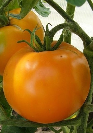 Середньоранній сорт для теплиць та відкритого ґрунту. Рослина середньо росла, висотою 70-100 см., детермінантного типу, сильнооблистнена. Плоди крупні, до 300г, плоско округлої форми з інтенсивною зеленою плямкою, яка при дозріванні зникає, а плоди набувають золотисто-оранжевого кольору. Плоди м’ясисті, солодкі, дуже приємної консистенції, мають підвищений вміст каротину. Використовується в основному у свіжому вигляді.